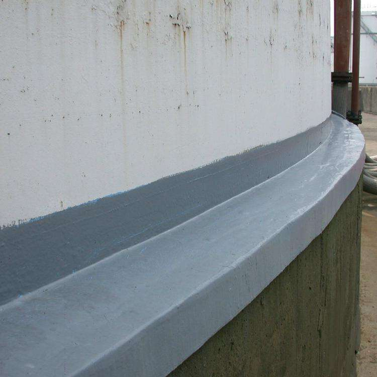 在各类大型储罐底部与砼接触部位,经常因为罐边缘板变形而与砼基础脱开,水和腐蚀性气体侵入罐底造成罐底的腐蚀。我公司研制的储罐边缘外专用密封胶CTPU防腐防水涂料,具有良好的弹性、抗老化性、耐腐蚀性的同时与钢板和砼有很强的粘接强度,可有效的阻止罐边缘板变形造成的罐底与砼的缝隙(中间可用玻璃纤维布作防水增强层),防止因罐底变形造成的罐底腐蚀。投入使用后取得了很好的防水效果。