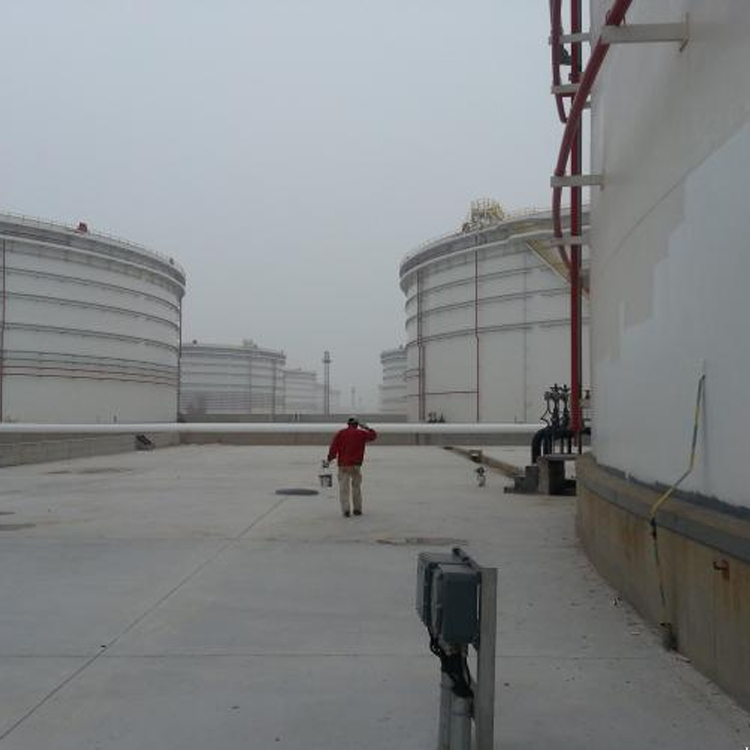 ⑴、将储罐基座边缘已腐蚀松动的水泥全部敲除。