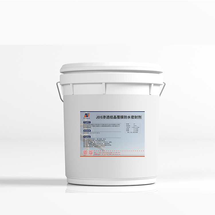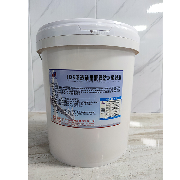 安百嘉JDS渗透结晶覆膜防水密封剂是一种以碱金属硅酸盐溶液为基料,加入催化剂、助剂,经混合反应而成的防水剂。JDS渗透结晶覆膜防水密封剂具有高渗透性,可直接用于水泥砂浆、混凝士构筑物表面,迅速渗入内部与水泥拌和物中的碱类物质反应、生成不溶于水的凝胶体,从而堵塞内部孔隙,封闭毛细孔通道,增加密实度,形成性防水层,并能提高混凝土构筑物机械强度,使其具有密封防水防潮、防风蚀碳化、防酸碱侵蚀等功能,保护钢筋不受腐蚀,延长混凝土使用寿命。