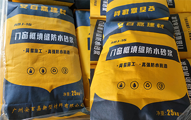 安百嘉门窗填缝防水砂浆是一种高质量耐水型水泥基单组份聚合物防水砂浆,适用于门窗缝的防水填充砂浆,同时也用于防水修补工程,具有防水、抗收缩等性能。
