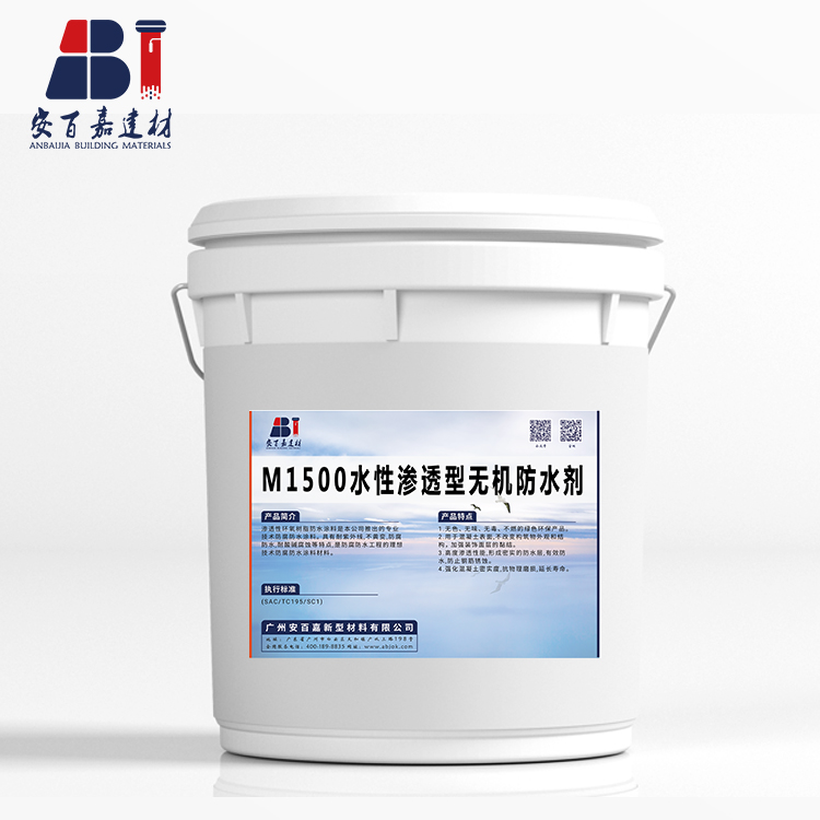 一、产品介绍M1500能够渗入到混凝土内部并与碱在水或水汽条件下发生化学反应生成硅凝胶,其独特的渗透作用以及与碱的化学反应,形成粘性胶,覆盖毛隙孔道,完全充满小的空隙。这层硅凝胶呈坚固、透气、玻璃针状结构的物质,其生成物成为混凝土永远的一部分而不仅仅是表面的涂层。因此只有水和碱存在的条件下,该过程就会不断重复,直到混凝土碱骨料反应,密封过的混凝土仍然能够“呼吸”。是一种高科技、环保型、无毒聚碳酸活性二氧化硅,其渗透的喷雾型凝胶喷涂于混凝土,与混凝土中的游离碱产生的化学反应,生成稳定的权蔓状晶体胶质,能有独立自主地堵塞凝土内部毛细空隙,使混凝土结构具有持久的防水功能和更好的密实度及抗压强度,使之能有效地阻止酸碱物质、油渍和机油对混凝土的侵蚀及提高防霉、抗风化的能力,效果显著。M1500防水剂为碱激活的化学渗透液,属无机材料。
